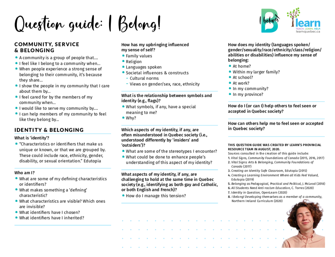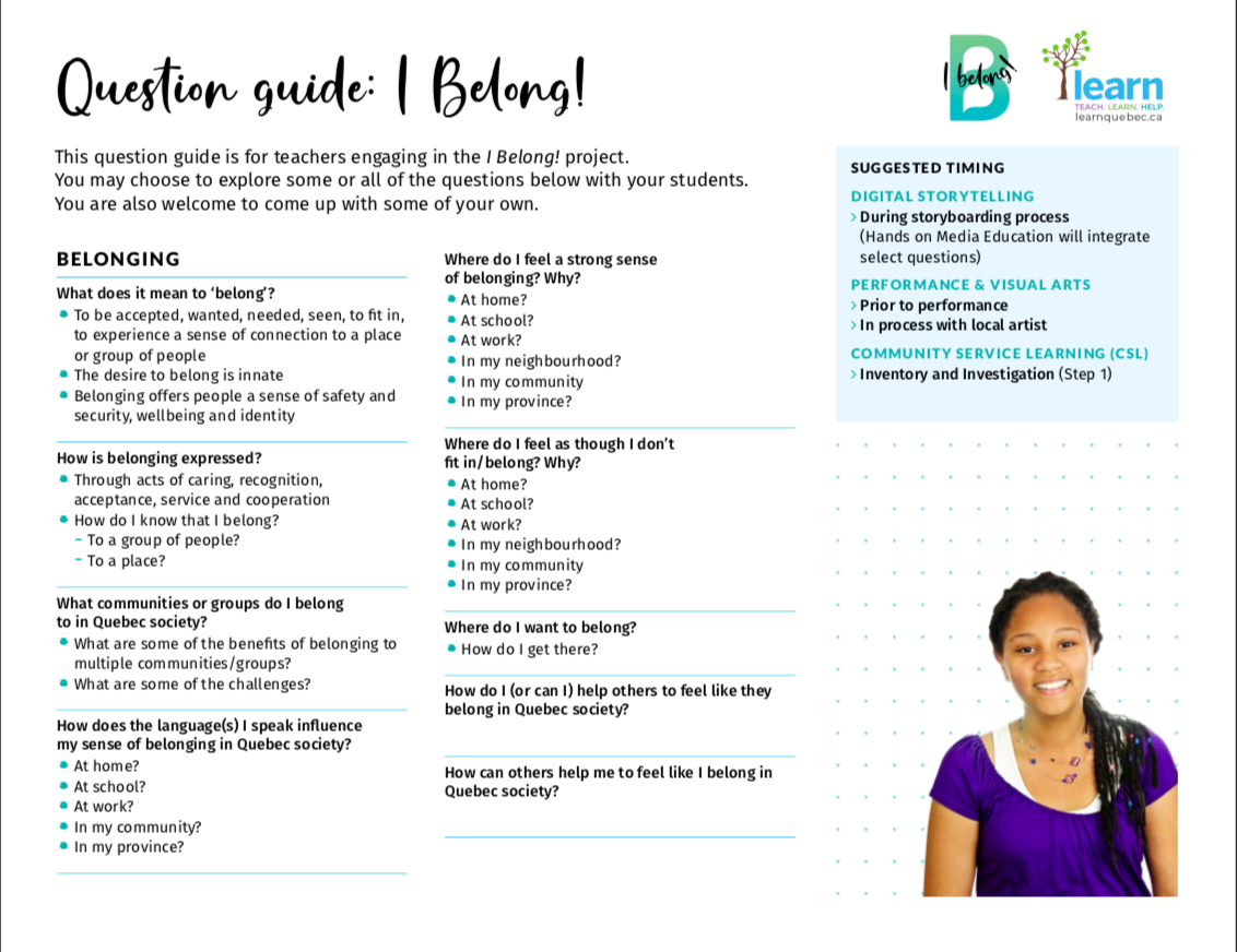 Exploring identity and belonging in Quebec with the I Belong! question guide